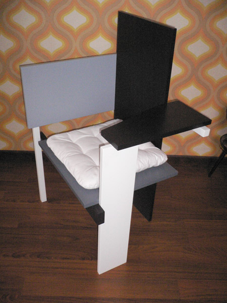 In schwarz, weiß und Grautönen entspricht auch dieser Hochzeitsstuhl der Bauhaus/"de Stil" Philosophie der 1920er Jahre.